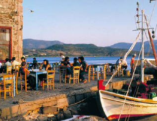 Die gemütlichen Tavernen, entlang der Hafenpromenade laden zum Verweilen bei