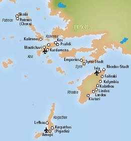 Kos, die ursprüngliche Insel Karpathos, die Schwammtaucherinsel Symi und