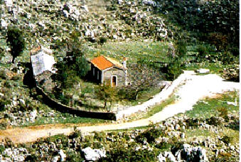 Ilias-Berg, liegt direkt am Rand einer tiefen Schlucht Paliohora.