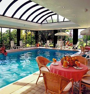 Sonnenschirme und Pool-/Strandtücher, Hallenbad (12 x 6 m), Fitnessraum,