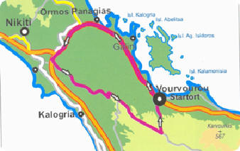 Küstenstrasse von NIKITI kommend, fährt man an der Abzweigung nach NEOS