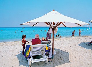 Sand-/Kiesstrand, bis zum Zentrum von Kryopigi ca. 1,5 km. (Hotelbus 4 x täglich inklusive),