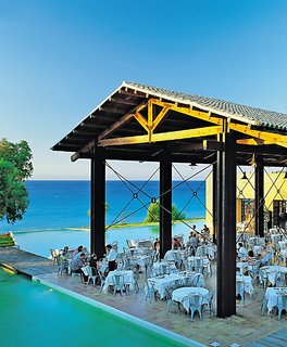 Umgebung. Restaurant mit Außenterrasse und Blick auf das Meer und die