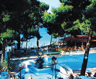 der Sithonia, ruhig, um geben von Schatten spendenden Pinien, inmitten eines