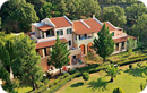 Hanglage, umgeben von Felsen und Bäumen schmiegt sich die Anlage