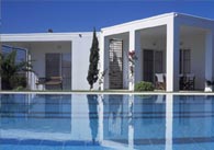 Die Anlage wurde im Stil eines ägäischen Dorfes gebaut, umgeben von