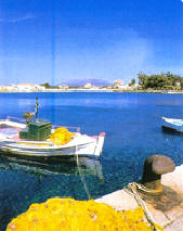 und frühhelladischen Epoche bewohnt war. In der Ufersenke der Bucht liegt