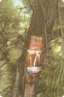 mit dem der Baum seine Wunde schloss, direkt in den Behälter. Wenn kein Saft
