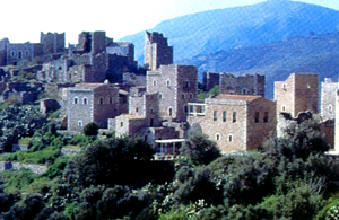 unverfälschter Mani-Ort mit Türmen und Steinhäusern, der angenehmen