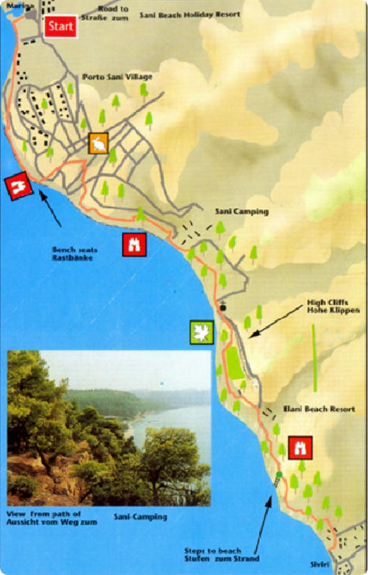 Beschreibung geht von Porto Sani Village Richtung Siviri aus. Sie sollten